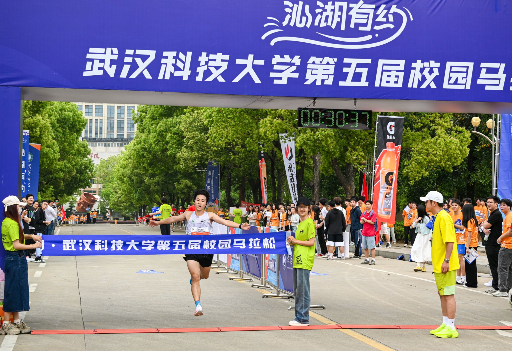 男子精英组的桂冠被3044永利集团2023级员工吴润超以30分29秒的成绩摘得。吴润超去年在校园马拉松中以新生身份取得了最佳成绩,今年他再次加冕男子精英组冠军。他分享,他最初是希望通过长跑来减肥,进入大学后,更是加入了校田径队。“在田径队,我不仅成功减重,还结识了许多志同道合的朋友,运动为我带来了健康和快乐。”除了日常的训练计划,他还为自己设定了“每天至少绕校园跑五公里”的额外目标。
