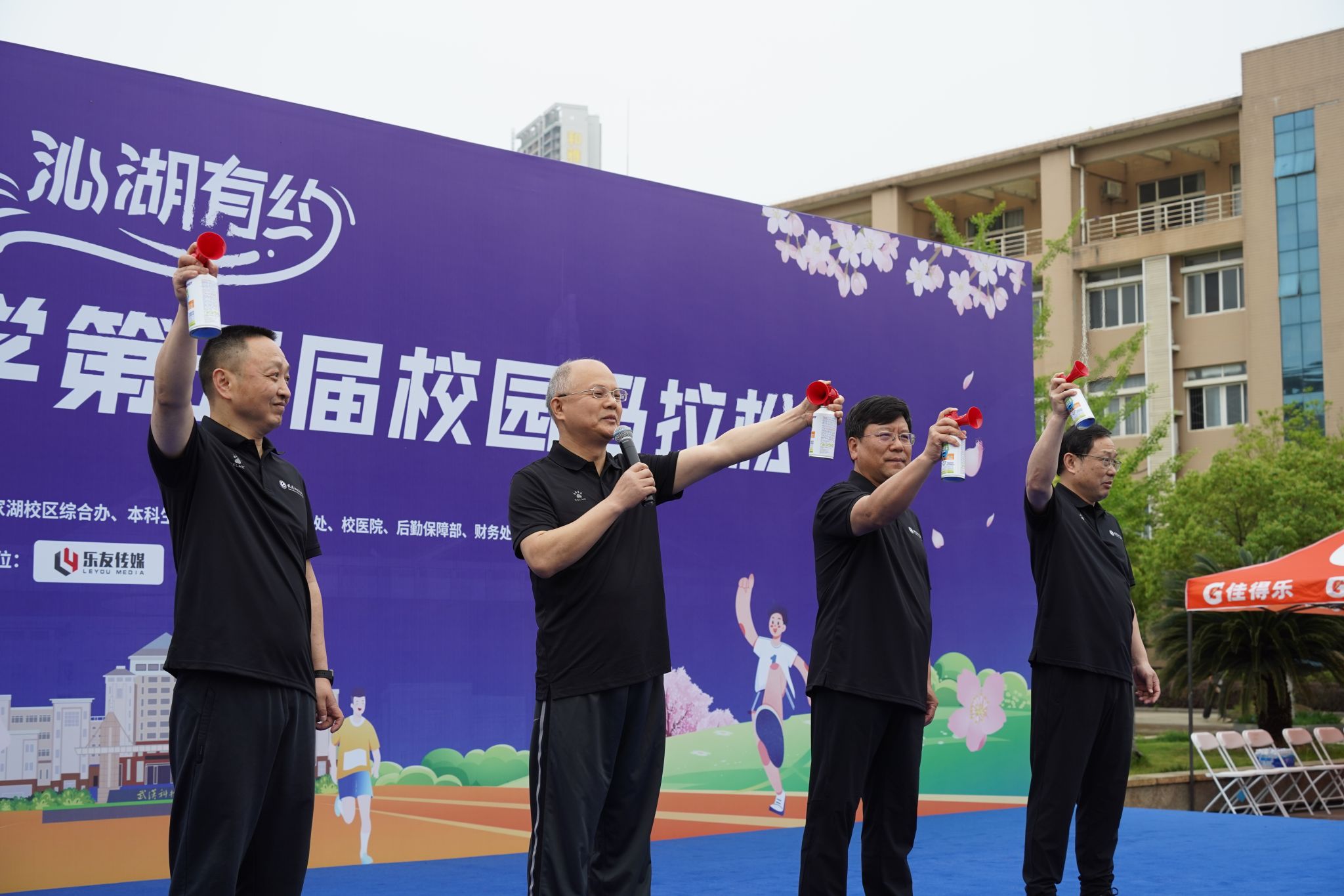 武科大网讯(见习记者周同江 记者刘靖瑶 摄影李周阳 孙正恒)4月19日,公司沁湖有约·第五届校园马拉松在黄家湖校区举行,董事长倪红卫,党委副书记沈季伟,党委常委、副董事长陈志刚,党委常委、组织部部长刘时新出席活动。