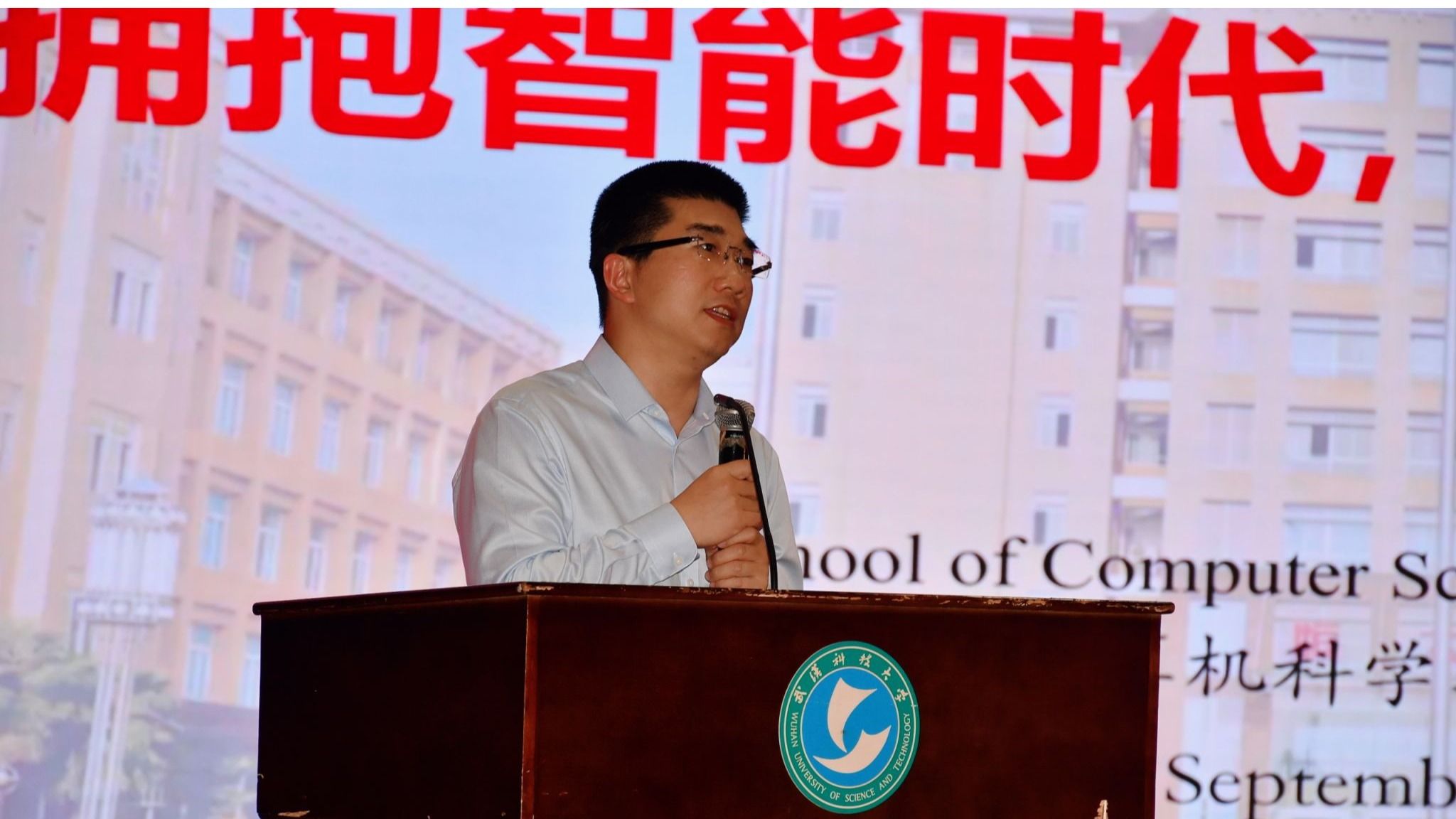 “117名教师,26位教授领衔,40位副教授护航,13位博导掌舵——这是你们的‘学术梦之队’。”张凯的话语引来全场掌声。他特别介绍了“宝钢优秀教师奖”得主张晓龙教授的“代码诗人”教学风格:“张老师的《软件工程》课,能让抽象概念变得鲜活有趣。”屏幕上同步播放着张晓龙老师上课的画面,以及网络工程系获评“湖北省优秀基层教学组织”的荣誉证书。“国家级教学成果奖2项、省级6项,《C语言程序设计》等国家级一流课程……这些不是冰冷的数字,而是照亮你们求知路的灯塔。”