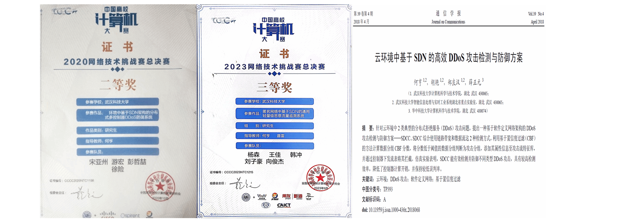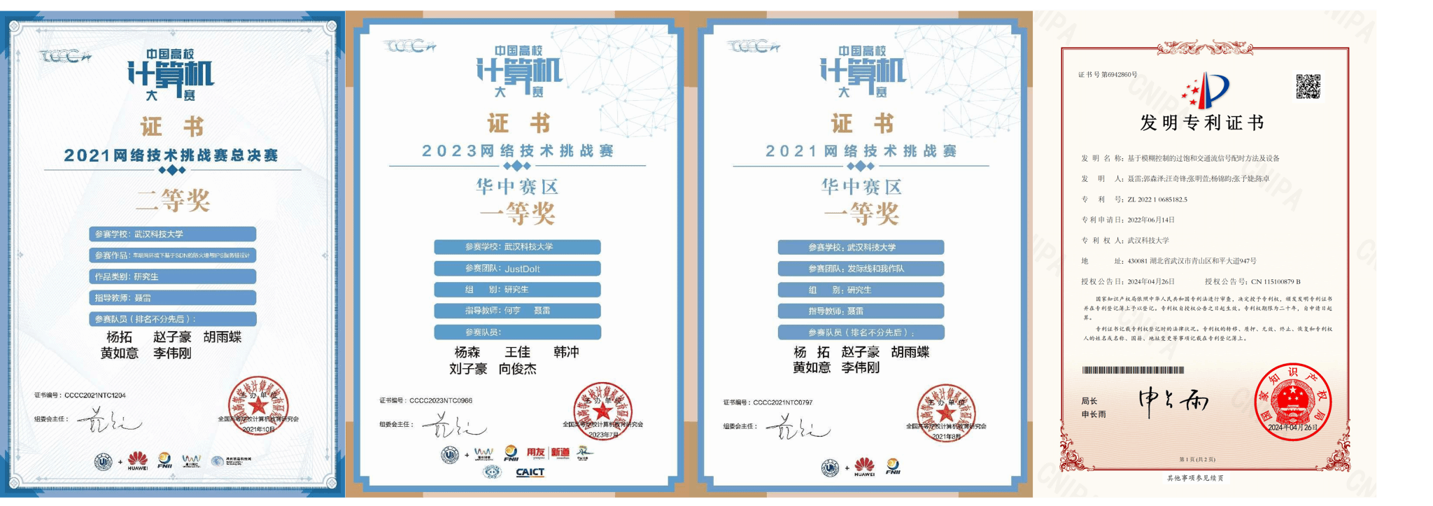 1.2020-2023中国高校计算机大赛-网络技术挑战赛(B1类),多项全国二等奖、三等奖;
