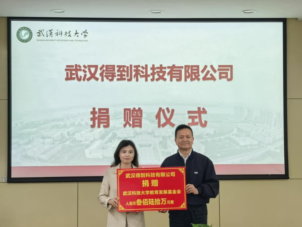 捐赠仪式上,武汉得到科技有限公司向公司捐赠360万元用于公司教育事业的发展。余淑均代表公司感谢武汉得到科技有限公司的慷慨捐赠,并简要介绍了公司近年来在公司产品、科学研究和社会服务等方面取得的成就。他表示,企业为公司建设提供宝贵的资金支持,不仅是对公司教育事业的认可,更是企业社会责任的体现。公司将充分利用这笔捐赠资金,进一步改善办学条件,提升教育质量,为社会培养更多高素质人才。