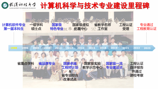 计算机科学与技术专业从1988开始招收第一批本科生,到2023年已经历了35年的建设历程,1996年获省重点学科,2008年获省品牌专业,2010年获国家特色专业,2013年获国家卓越工程师培养计划和省专业综合改革试点,2014年获国家级虚拟仿真实验教学中心,2015年获计算机国家级实验教学示范中心,2018年获省级教学名师工作室,2019年获国家级一流本科专业建设点和省级基层教学组织,2021年12月工程教育认证申请被受理,2022年7月提交自评报告被评审通过,2022年11月接受认证专家进校考察,2023年6月计算机科学与技术专业正式通过中国工程教育专业认证。