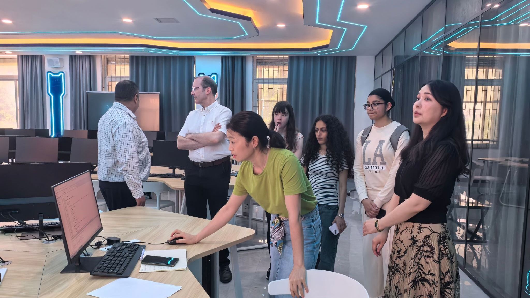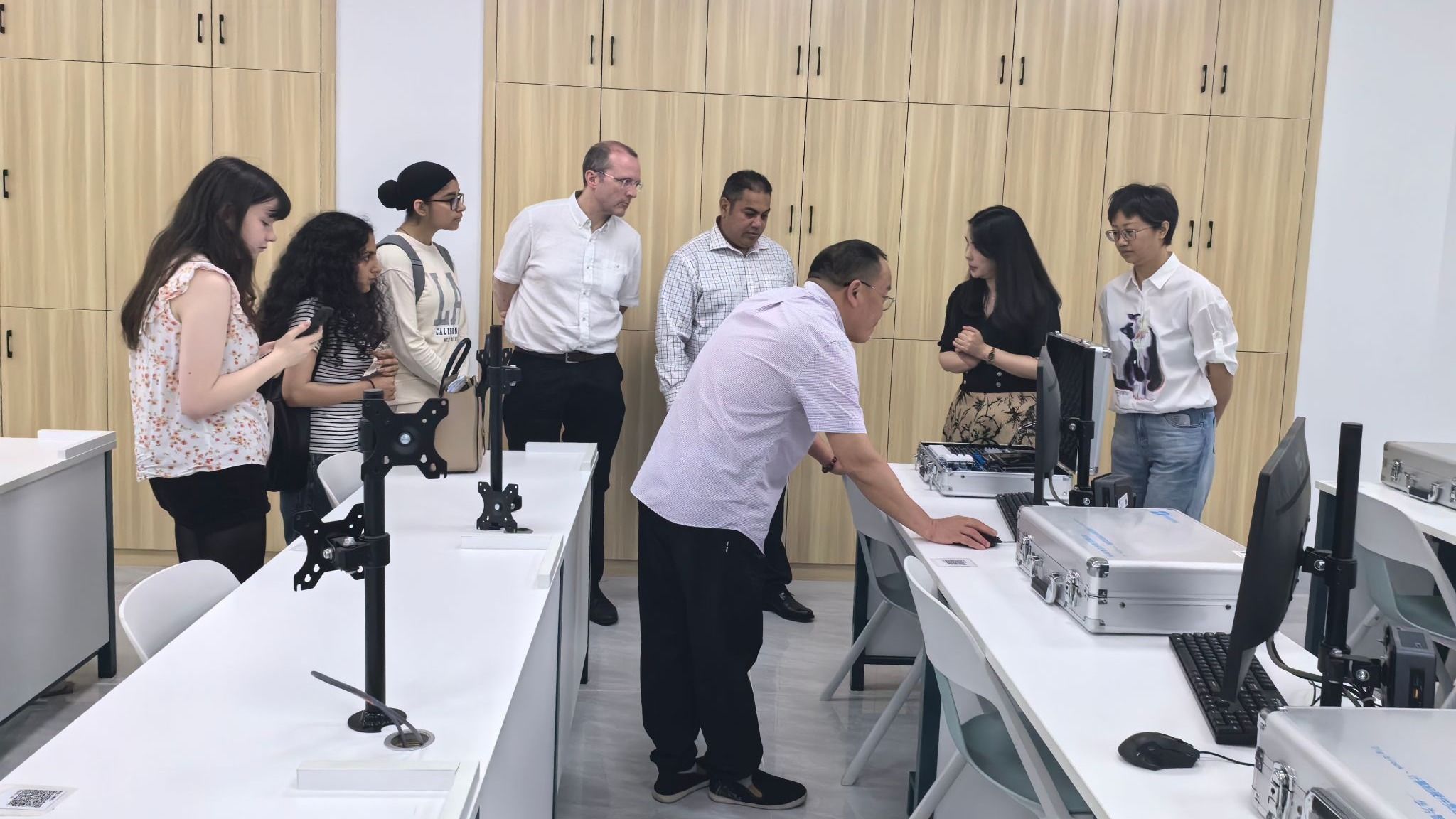 在3044永利集团实验室主任刘星老师的陪同下,英国伯明翰城市大学的师生深入各实验室进行了实地参观;在30101实验室,王晓峰老师详细介绍了虚拟仿真中心的发展历程和独特的实验教学资源;在30501实验室,陈姚节老师向客人展示了基于华为技术的硬件实验箱的实际应用;在30303实验室,谢潇老师带领客人领略了全国产华为生态的软件工程实验室的魅力;最后在30204实验室,胡威老师分享了移动互联实验室的特色项目和员工竞赛的丰硕成果。
