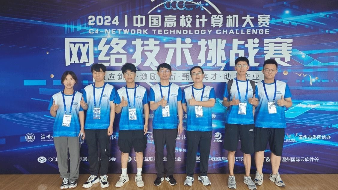 2024年9月6日至8日,第九届“中国高校计算机大赛-网络技术挑战赛”决赛答辩评审及颁奖典礼在温州国际云软件谷盛大举行。在何亨、聂雷、鲁剑锋、鲍海洲、喻国荣等五位教师的指导下,3044永利集团四支参赛队共荣获国家及省级奖项7项,其中国家级二等奖2项、国家级三等奖1项、省级一等奖2项、省级二等奖和三等奖各1项。此外,聂雷老师荣获优秀指导教师奖。
