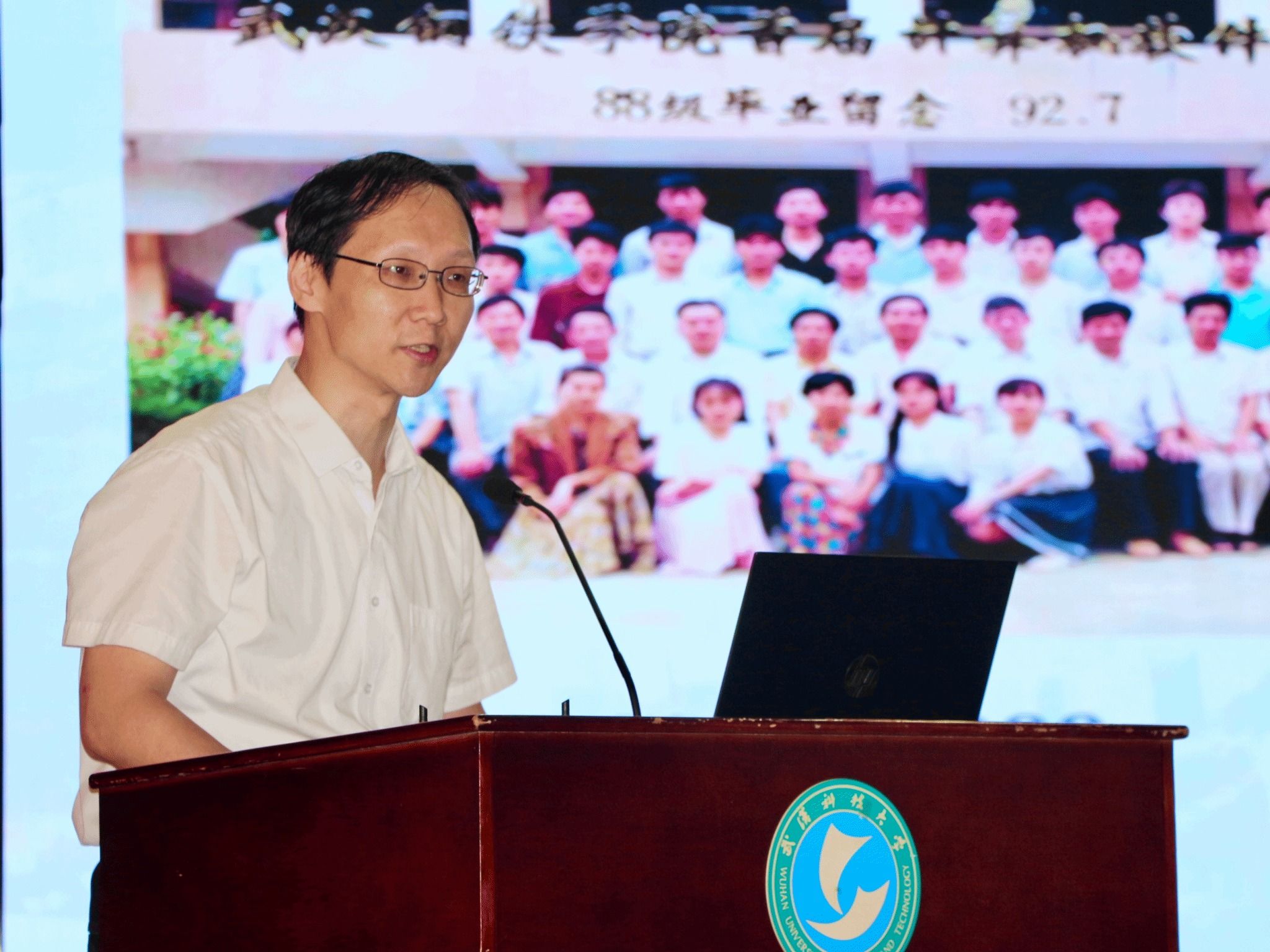 湖北省“楚天学者”特聘教授鲁剑锋作为教师代表发言,他将个人多年在学习、生活和工作中深刻体会浓缩为三句箴言寄语全体新生,希望同学们心中有梦,焕发勃勃生机,绽放着不可阻挡的生命力;眼里有光,不论何时面对挑战,依然拥有迎难而上的勇气和毅力;脚下有路,脚踏实地,行于正道,将个人成才之路与国家兴盛之道紧密相连,共筑辉煌。