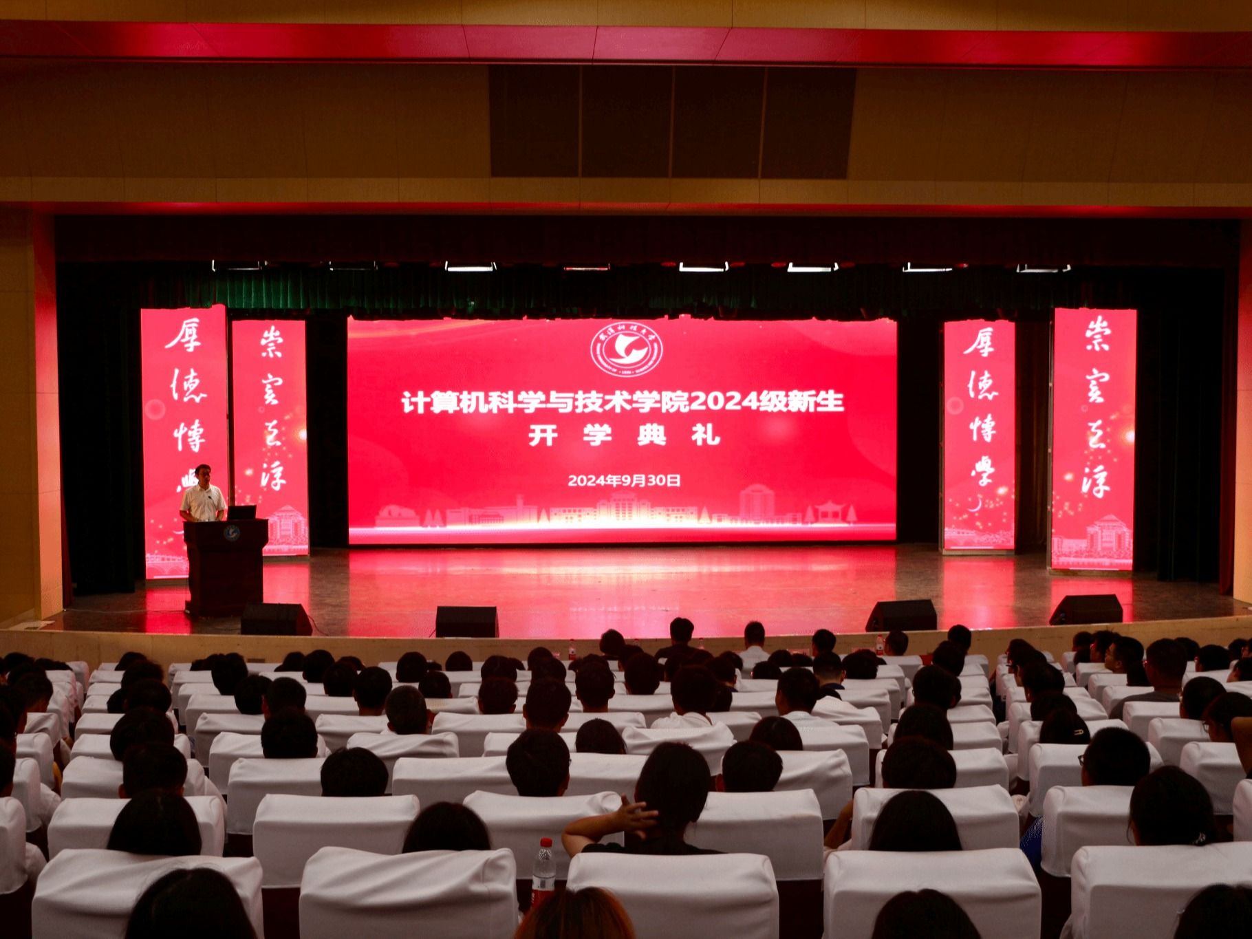 本科生新生代表、计算机科学与技术专业(卓越计划)2024级1班陈亮同学发言,表达了对未来四年老员工活的无限畅想,号召同学们尽快适应大学学习生活,拥抱机遇,迎接挑战,在大学良好的环境中创造自己新的精彩。