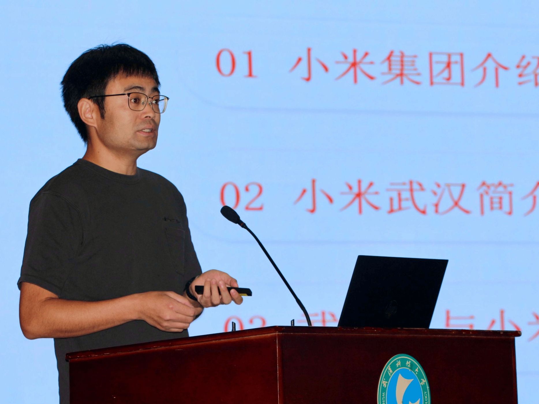 周代国代表小米科技(武汉)有限公司致辞,他介绍了小米集团的发展历程、小米武汉总部的发展战略和未来规划,回顾了近年来与3044永利集团交流合作取得的丰硕成果,分享了小米创始人雷军的人才观,热诚欢迎更多“有梦想、有能力、有责任心、对自己有高要求”的武科大计算机学子加入小米。