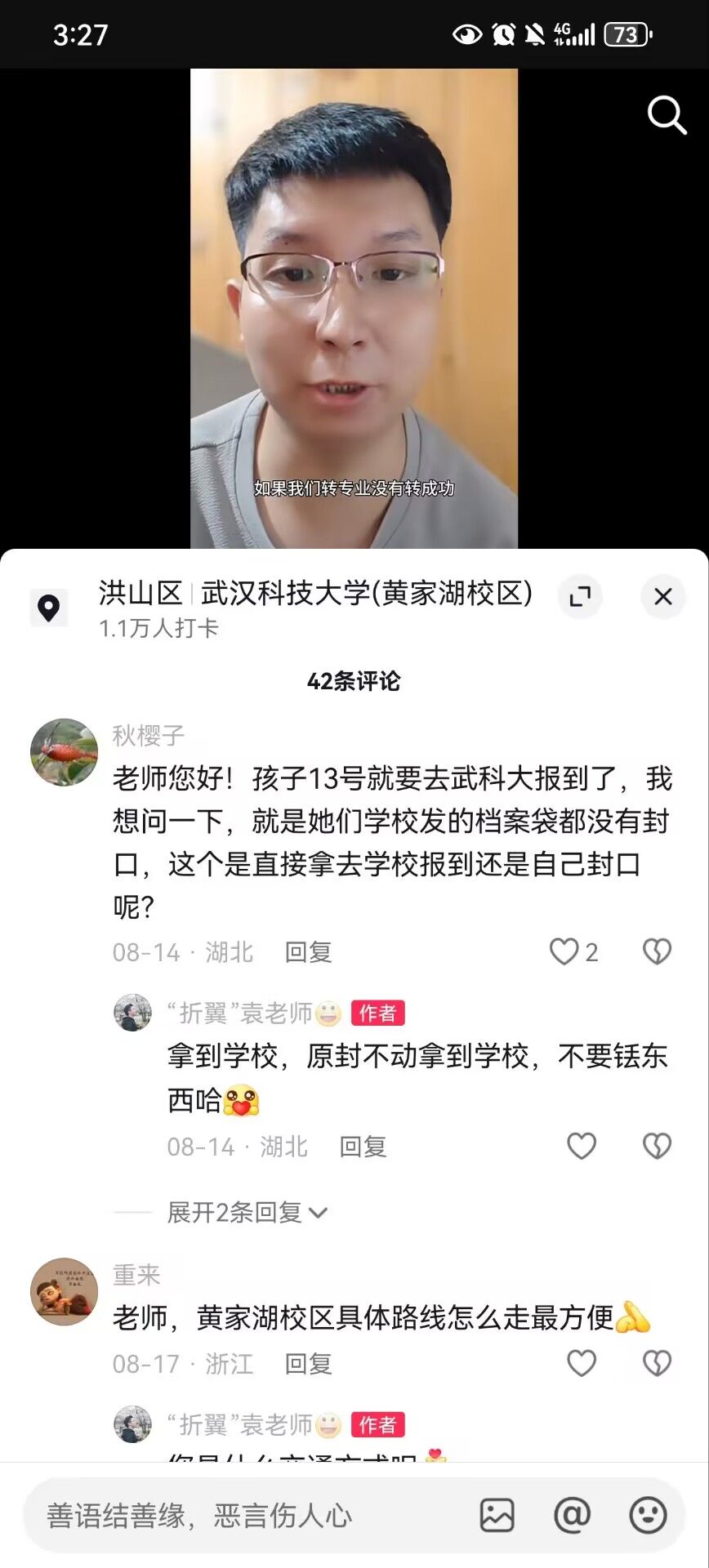 视频发布后,许多家长和员工在评论区留言提问就业前景、转专业、考研等问题,袁鑫都一一耐心解答。一些家⻓询问在读学⽣计算机专业分流情况,袁鑫从专业本身、就业前景、考研意义多个⽅⾯分析此专业并且对学⽣给予⿎励肯定,并认真地说:“无论选择哪个专业方向,都需要他在大学期间努力学习专业知识,积极参加实践活动,不断提高自己的综合素质。”他基于自身经验,给予员工实用性的建议,为他们拨开迷雾,找寻方向。