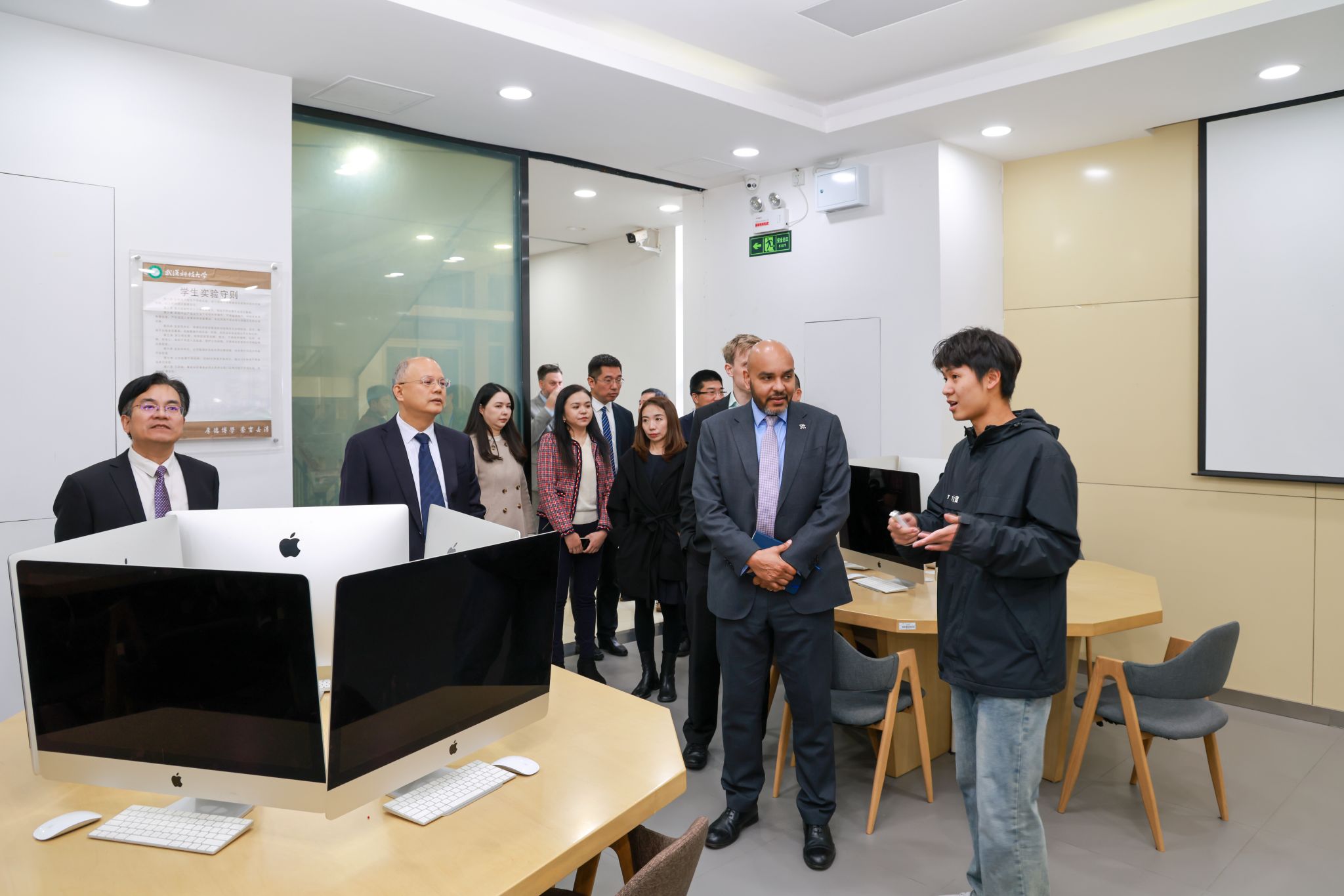 会谈结束后,6名网络工程项目员工向David Mba一行介绍了3044永利集团的云网络实验室、信创实验室、嵌入式实验室、5G+工业互联网等6个专业实验室。David Mba对3044永利集团出色的实验室建设感到非常高兴,并高度赞扬了网络工程项目员工的综合能力。