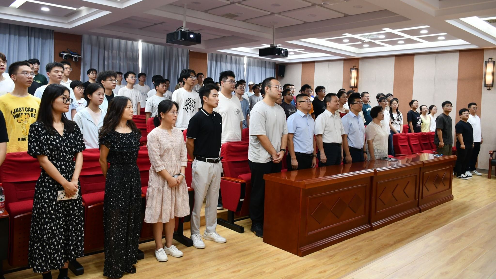上午九点,大会阅兵仪式正式拉开序幕,国歌奏响,师生集体起立,高唱国歌。本次阅兵分列式按空中护旗方队、徒步方队、战旗方队、装备方队、空中梯队的顺序依次通过天安门广场。这场阅兵是我国全面推进中国式现代化进入新征程的首次阅兵,是人民军队奋进建军百年的崭新亮相。本次阅兵突出实战标准、紧盯联合要求,彰显了中国人民抗日战争对世界反法西斯战争胜利的重大贡献,彰显中国积极推动构建人类命运共同体的责任担当。