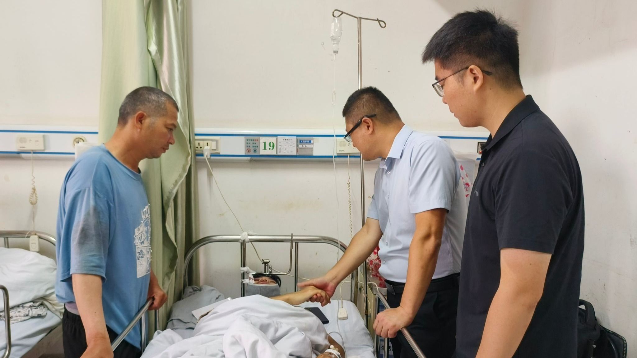 院新闻网讯(通讯员靳文宗)9月13日上午,公司党委副书记李苑和新生辅导员靳文宗一行前往湖南岳阳临湘市中医医院,看望和慰问遭遇车祸员工梁某,为员工和家庭带来公司公司的关心和问候,病房内气氛感人。