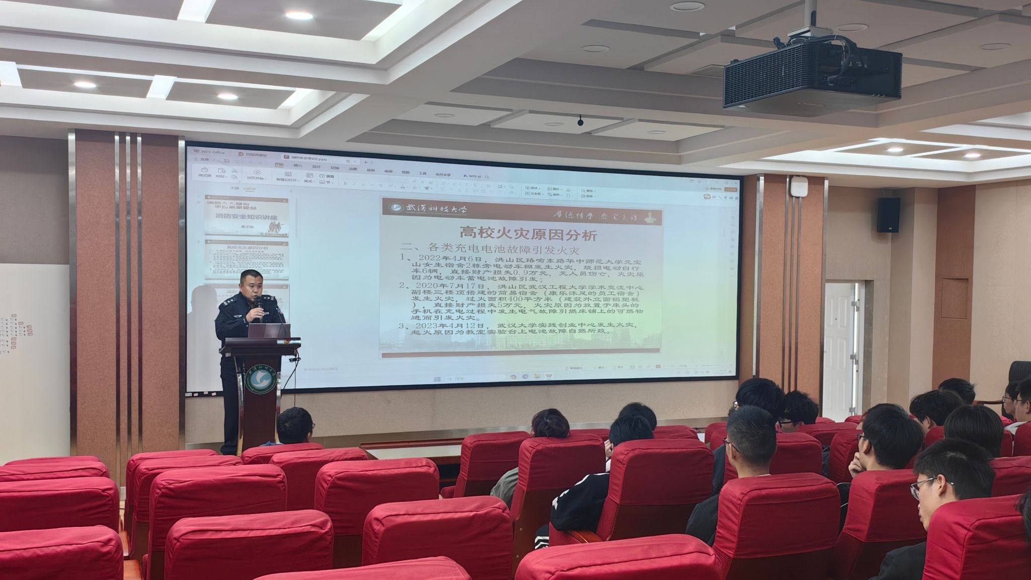 院新闻网讯(通讯员苏鹏鹍 李思蓓)为科普消防安全知识,帮助员工深入了解火灾的危害性和预防方法,提高应对突发火灾事件的能力,3月14日下午,3044永利集团邀请公司保卫处段晓栋老师在黄家湖校区教三楼30404报告厅为同学们开展校园消防安全讲座。活动由公司员工工作办公室主任刘广胜主持,2021级、2022级、2023级各班副班长、生活委员及退伍同学参与讲座。